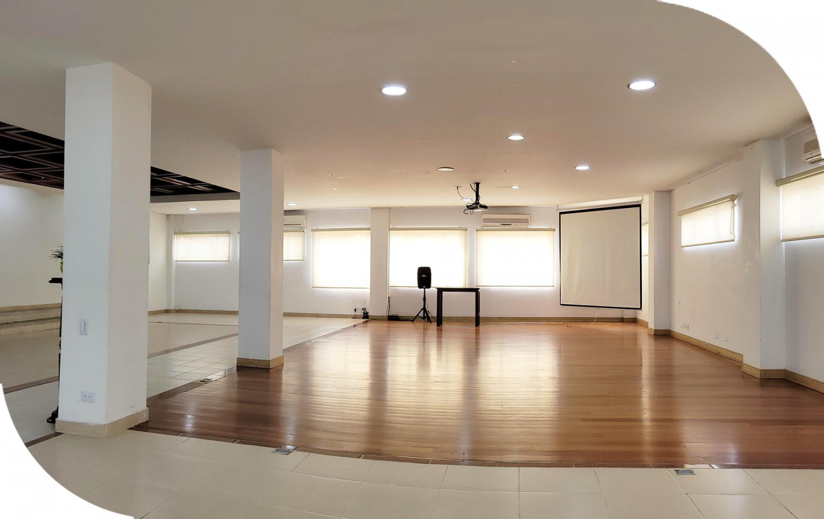 Capacidad 120 personas. Audiovisuales, silletería, wifi, mobiliario equipos médicos, cojines y colchonetas.