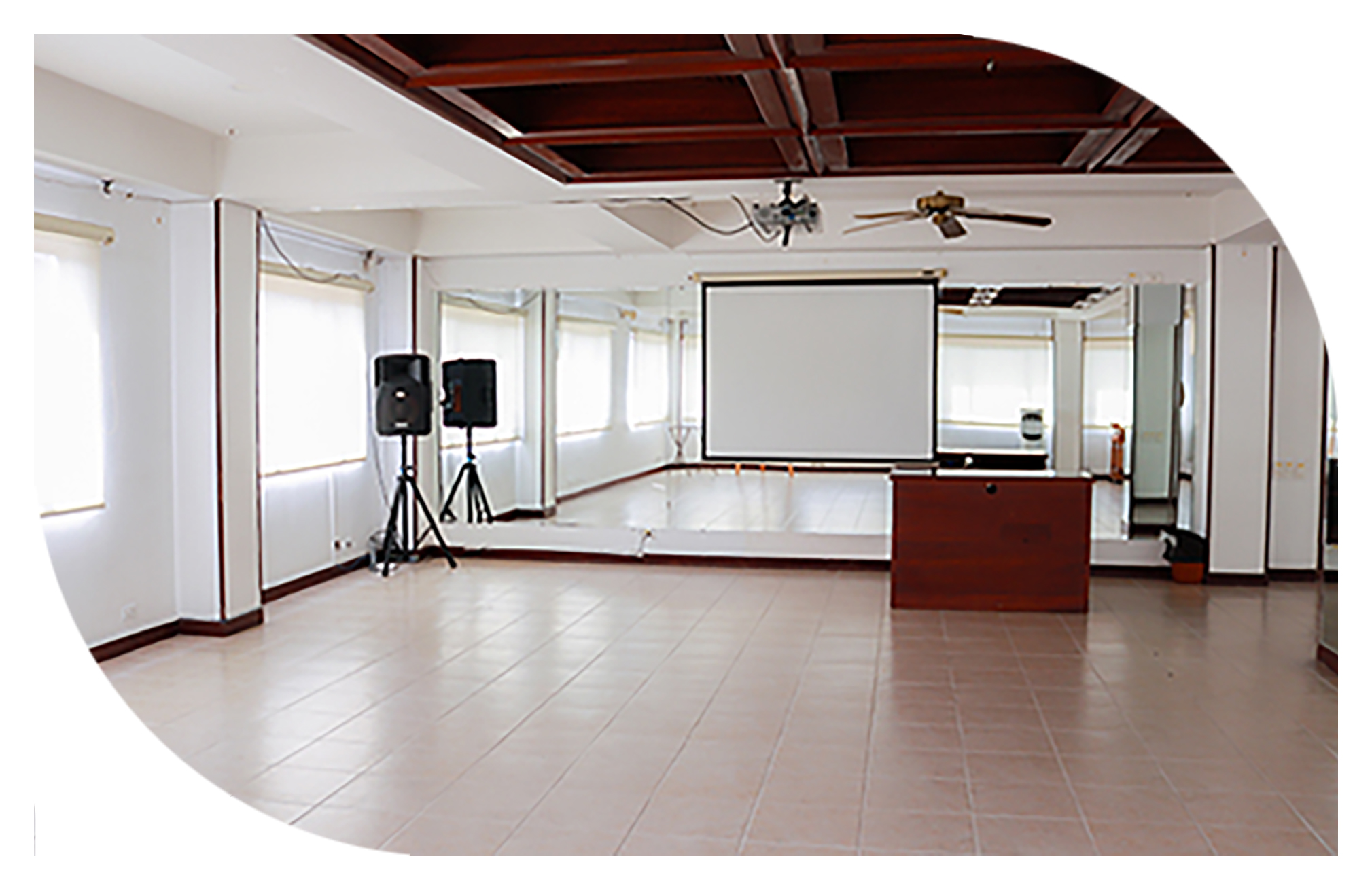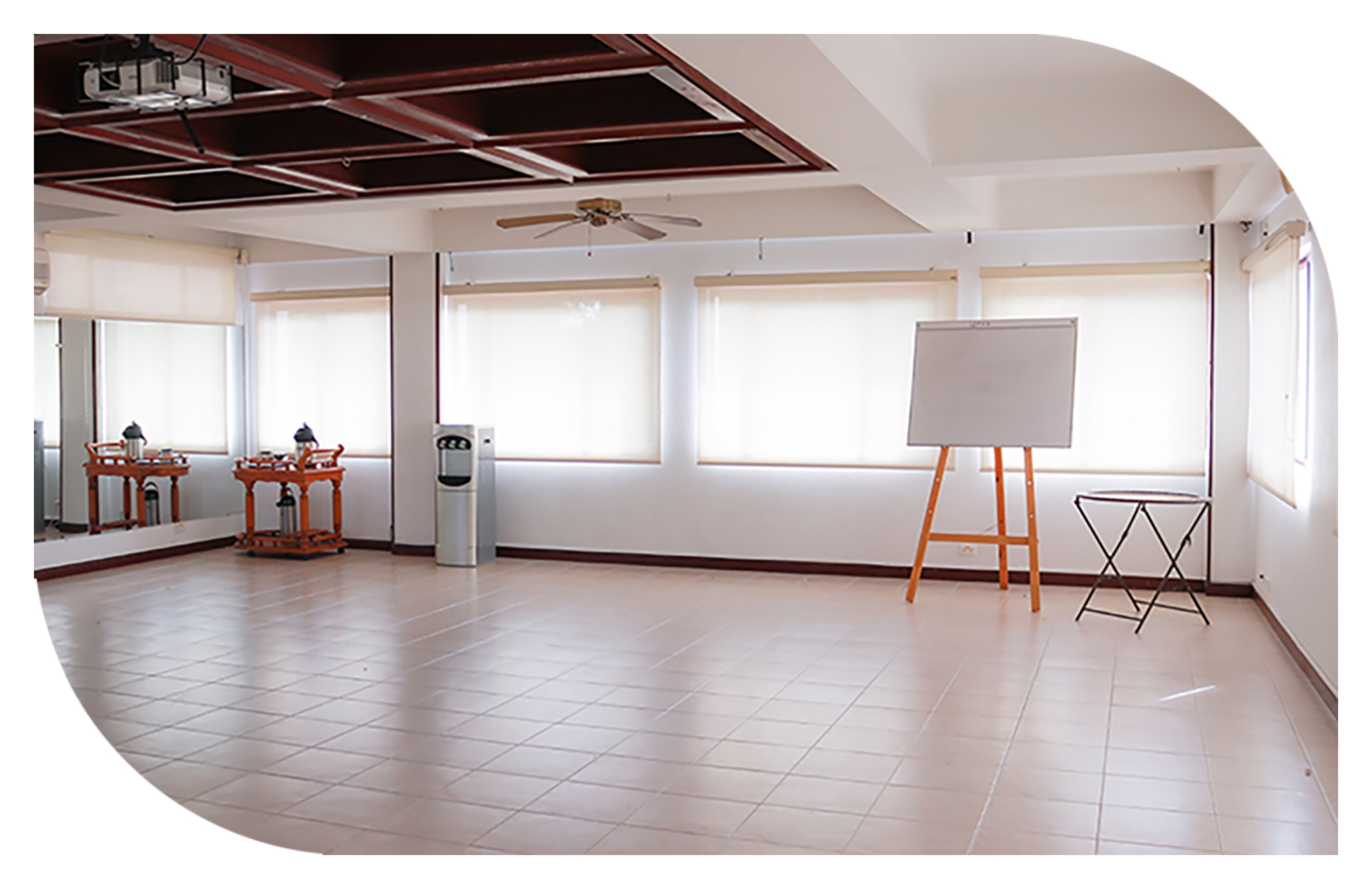 Audiovisuales, silletería, aire acondicionado, insumos médicos, cojines, colchonetas, salón con espejos.